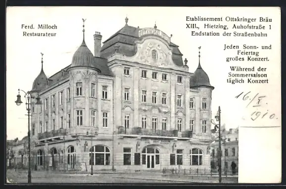 AK Wien, Hietzing, Etablissement Ottakringer Bräu, Inh. Ferd. Milloch, Auhofstrasse 1