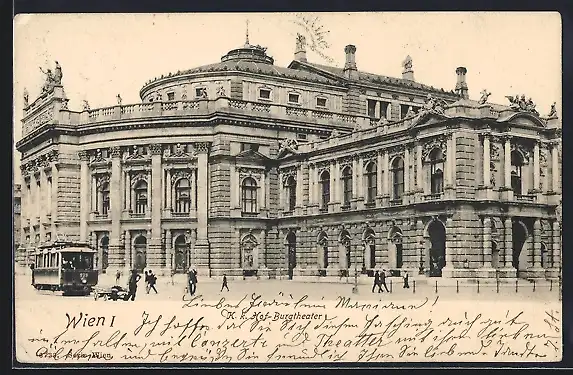 AK Wien, Hof-Burgtheater mit Strassenbahn