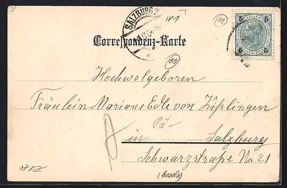 alte Ansichtskarte, gelaufen 1904, Eckknicke li., Stempelspur, guter Zustand