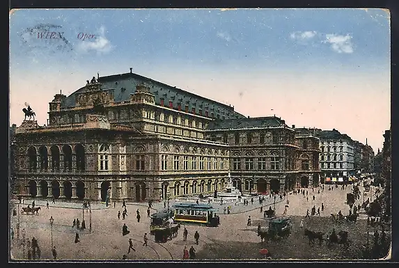 AK Wien, Hofoper mit Strasse u. Strassenbahn