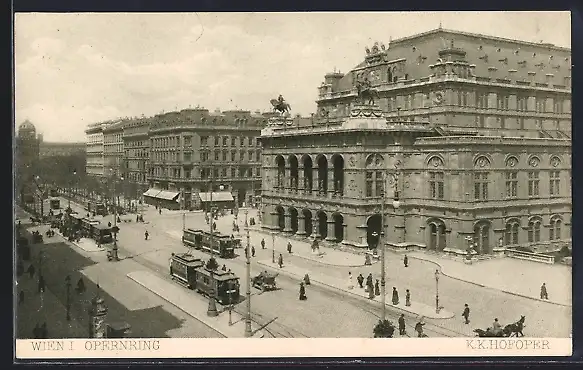 AK Wien I., Opernring aus der Vogelschau, mit Strassenbahnen