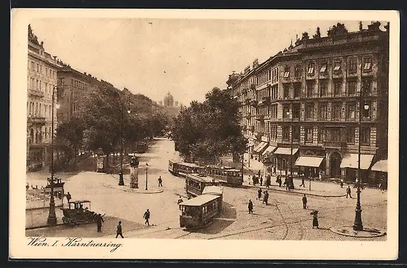 AK Wien I, Ringstrasse, Strassenbahnen auf dem Kärntnerring