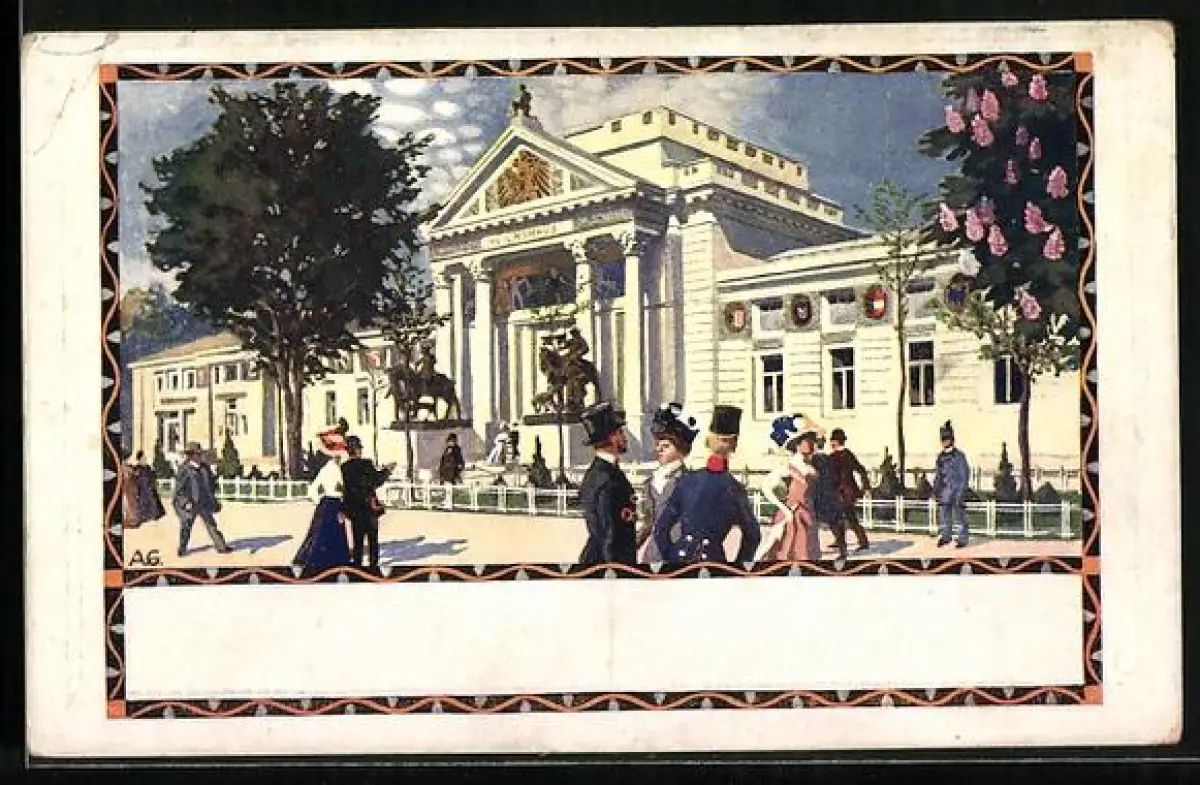 AK Wien, Internationale Jagd-Ausstellung 1910, Besucher am Reichshaus