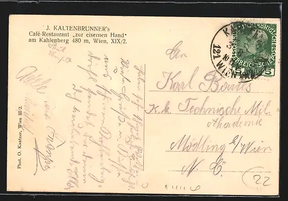 AK Wien, J. Kaltenbrunner`s Café-Restaurant zur eisernen Hand am Kahlenberg