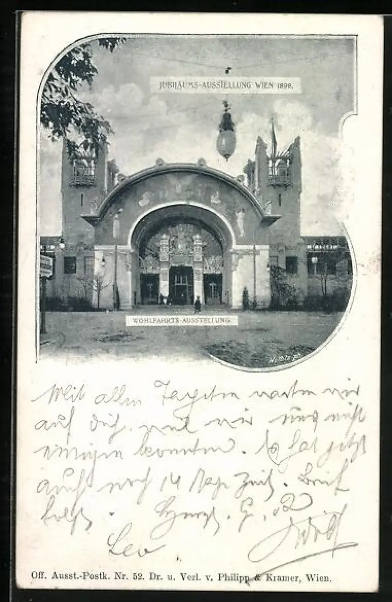 AK Wien, Jubiläums-Ausstellung 1898, Wohlfahrts-Ausstellung, gerahmte Ansicht
