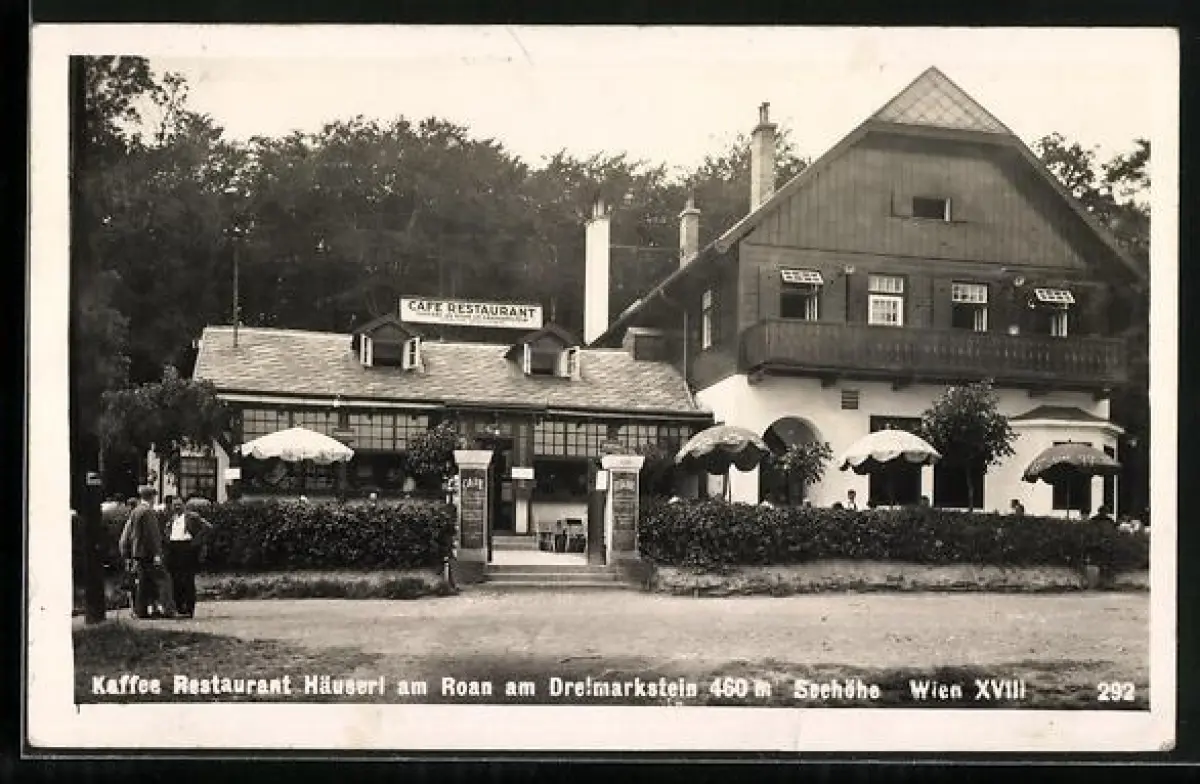 AK Wien, Kaffee-Restaurant Häuserl am Roan am Dreimarkstein