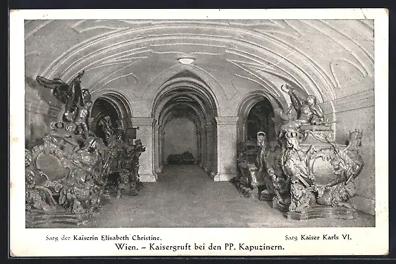 AK Wien, Kaisergruft, Sarg der Kaiserin Elisabeth Christine und Sarg Kaiser Karls VI.