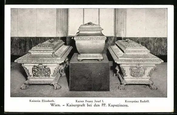 AK Wien, Kaisergruft bei den PP. Kapuzinern, Särge Kaiserin Elisabeth, Kaiser Franz Josef I., Kronprinz Rudolf