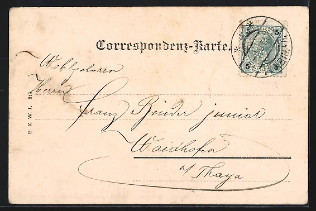alte Ansichtskarte, gelaufen 1904, Stempelspur, guter Zustand