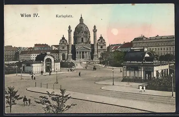 AK Wien, Karlsplatz mit Karlskirche und K. k. technischer Hochschule