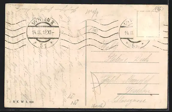 alte Ansichtskarte, gelaufen 1912, Briefmarke entfernt, rückseitig Oberflächenschaden, guter Zustand