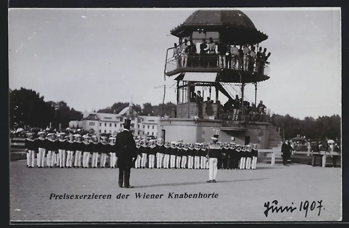 AK Wien, Krieau, Preisexerzieren der Wiener Knabenhorte auf der Trabrennbahn