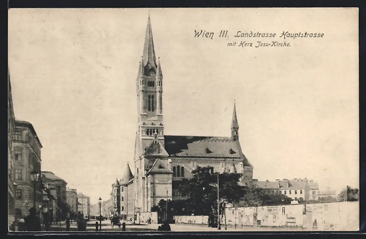 AK Wien, Landstrasse Hauptstrasse mit Herz Jesu-Kirche