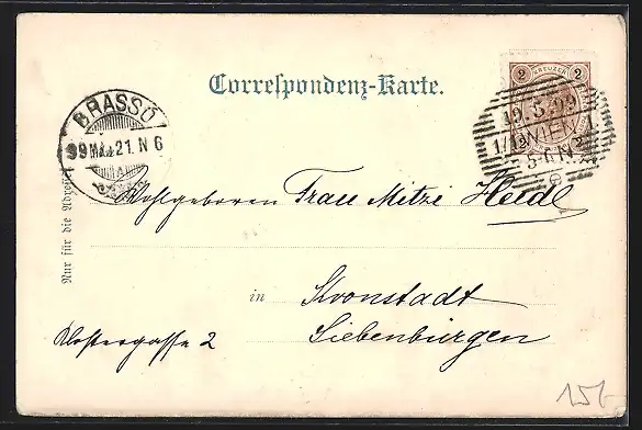 alte Ansichtskarte, gelaufen 1899, guter Zustand