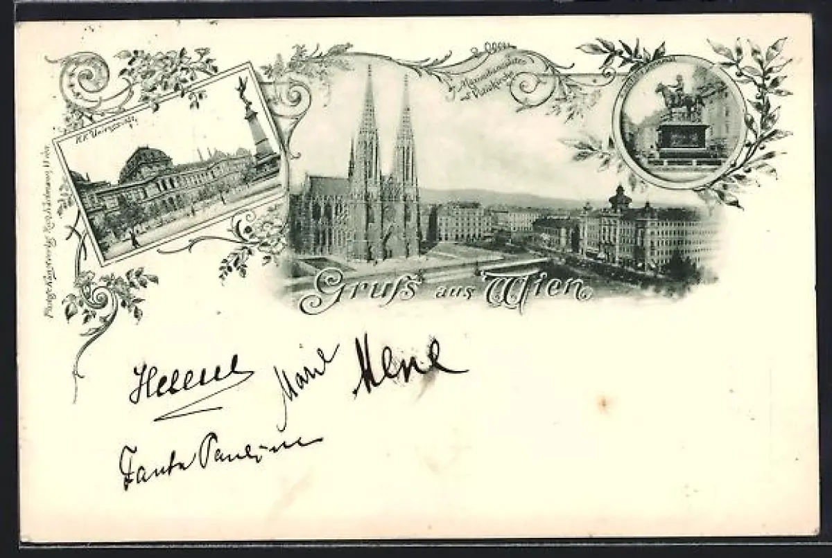 AK Wien, Maximiliansplatz und Votivkirche, K. k. Universität, Radetzky-Denkmal