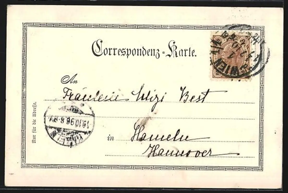 alte Ansichtskarte, gelaufen 1896, guter Zustand