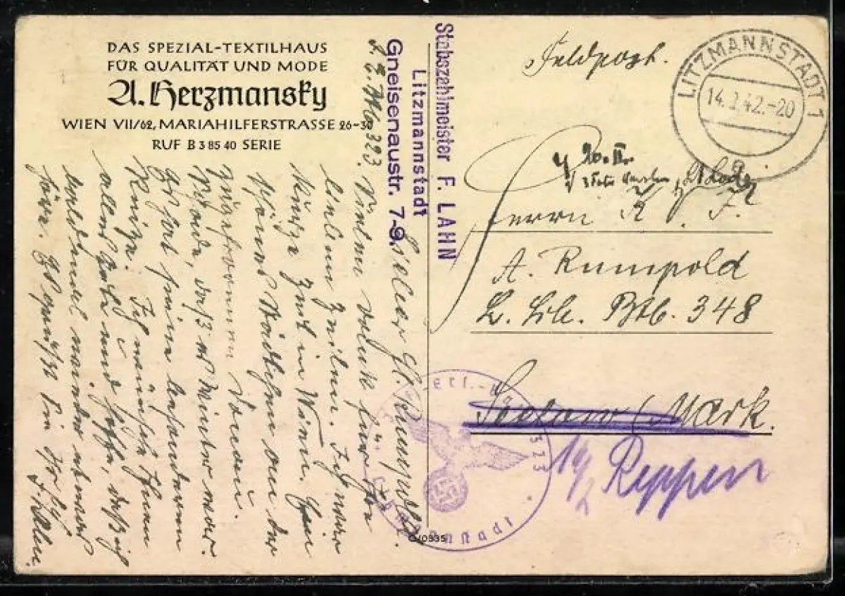 gelaufen 1942, Eckknick unten li. u. oben re., guter Zustand