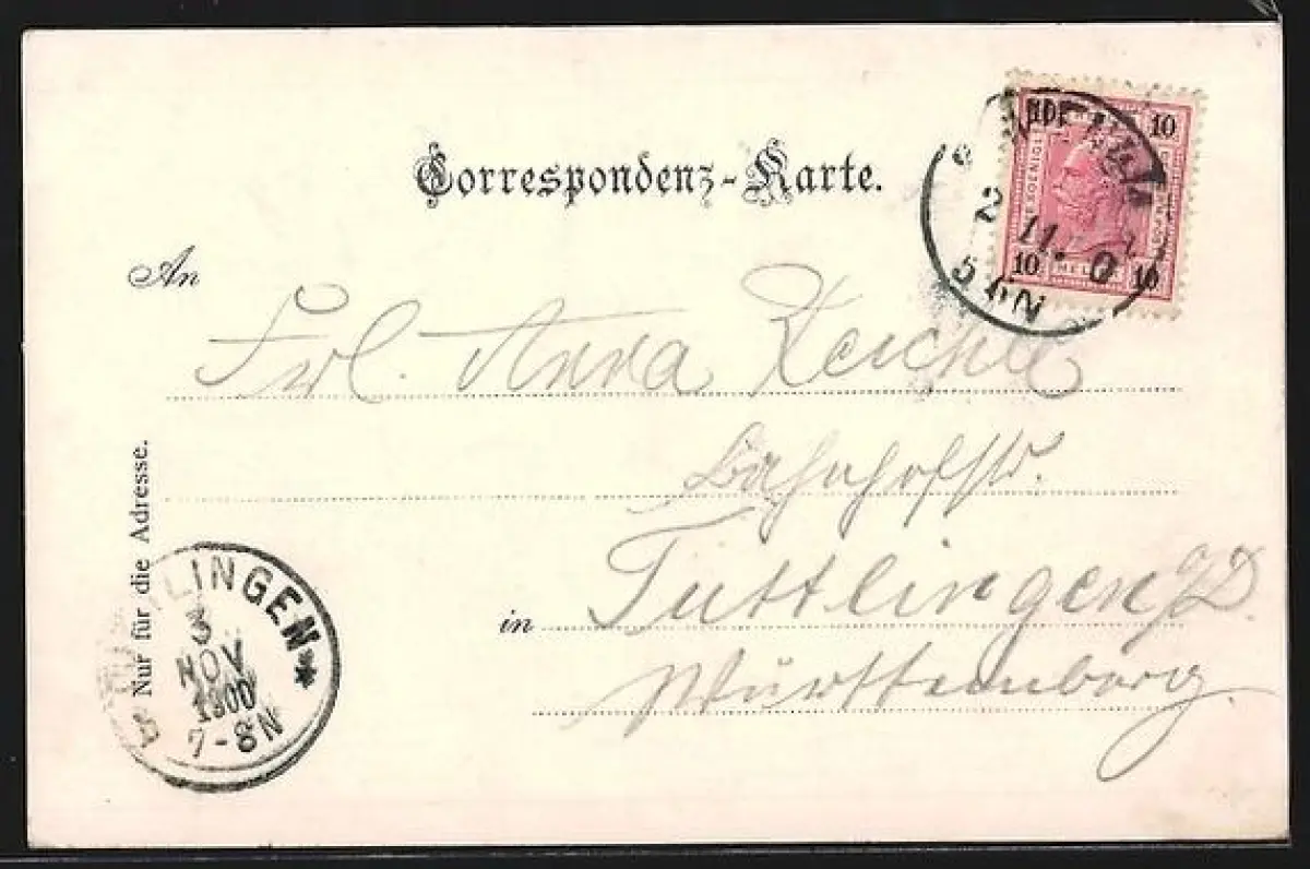 alte Ansichtskarte, gelaufen 1900, Stempelspur, guter Zustand