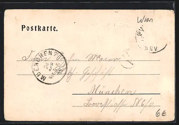 alte Ansichtskarte, gelaufen 1905, Briefmarke entfernt, rückseitig Oberflächenschaden, Stempelspur, Ecken bestoßen, guter Zustand