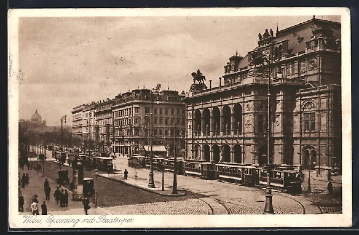 AK Wien, Opernring mit Staatsoper u. Strassenbahn