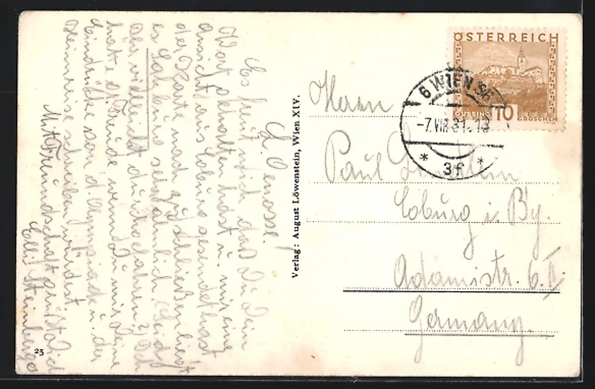 gelaufen 1931, Ecken bestoßen, guter Zustand