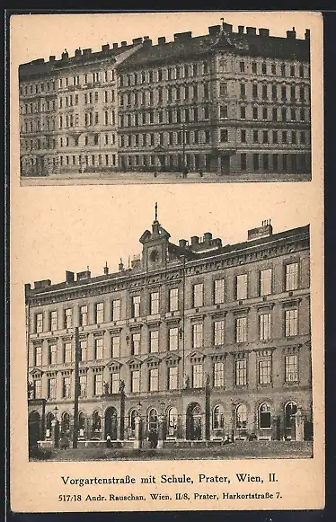 AK Wien, Parter, Vorgartenstrasse mit Schule