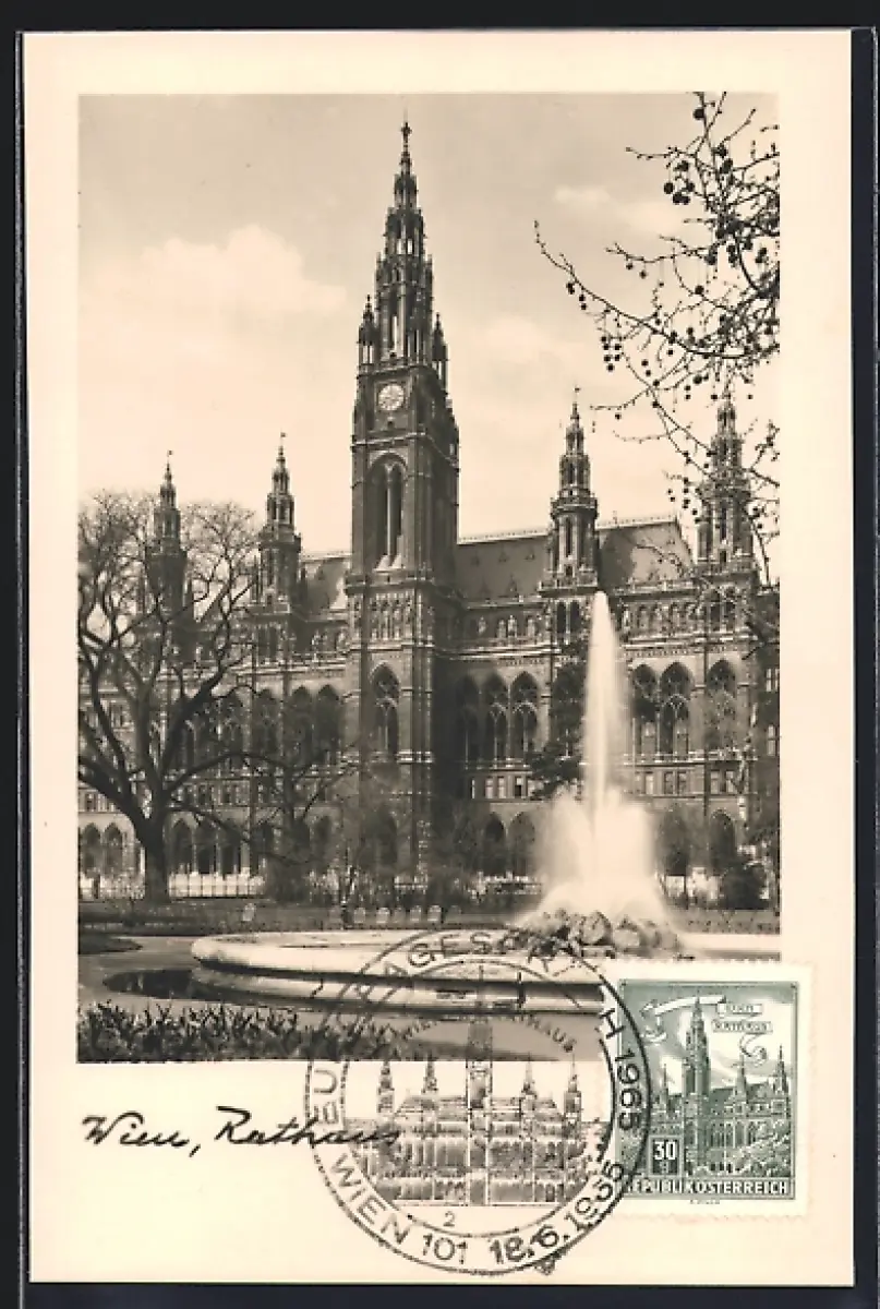 AK Wien, Partie am Rathaus mit Springbrunnen