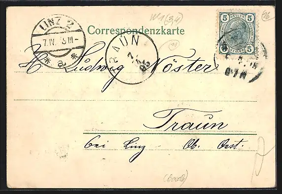 gelaufen 1905, Stempelspur, guter Zustand
