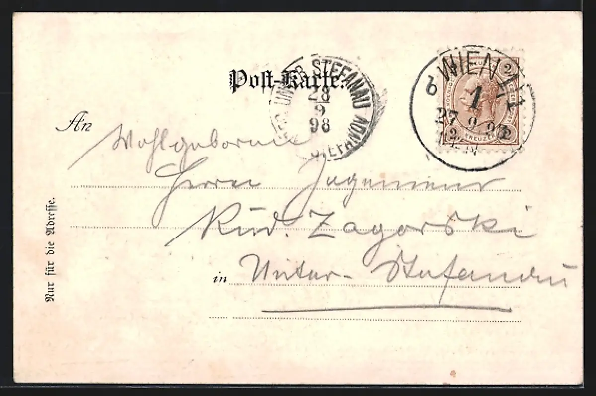 alte Ansichtskarte, gelaufen 1898, Stempelspur, guter Zustand
