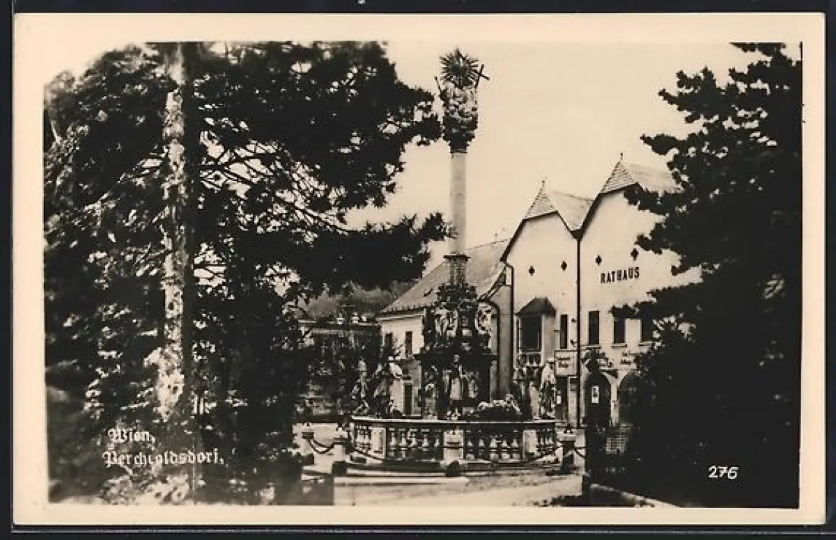 AK Wien, Perchtoldsdorf, Partie mit Denkmal und Rathaus