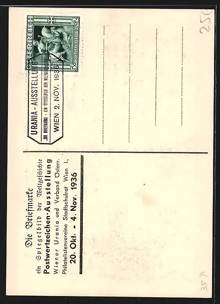 AK Wien, Postwertzeichen-Ausstellung 1936, Wiener Urania