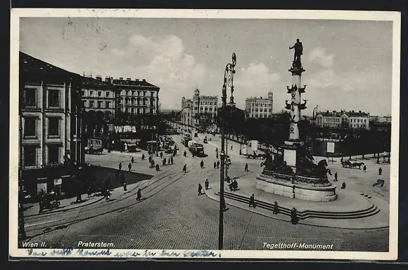 AK Wien, Praterstern, Tegethoff-Monument, Strassenbahnen