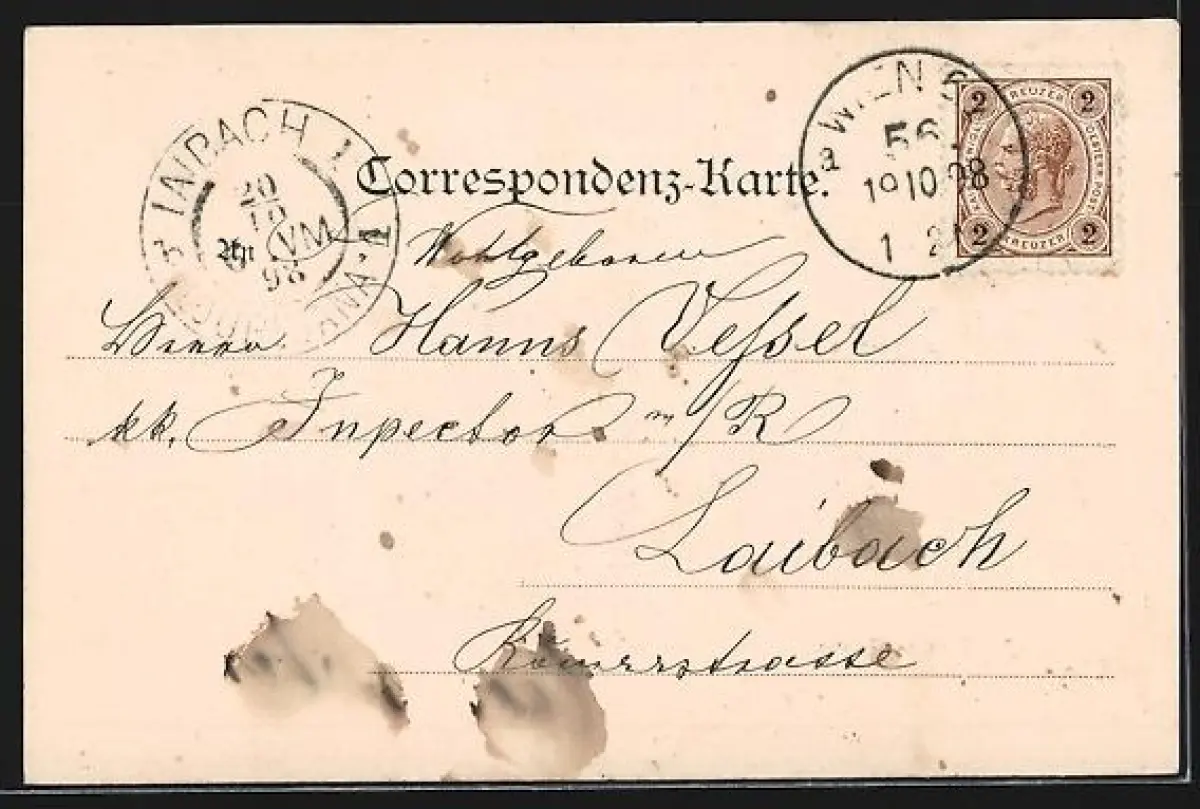 alte Ansichtskarte, gelaufen 1898, guter Zustand