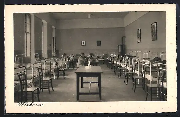 AK Wien, Schlafzimmer in der Schülerherberge des Stadtschulrates, Unt. Augartenstrasse 3