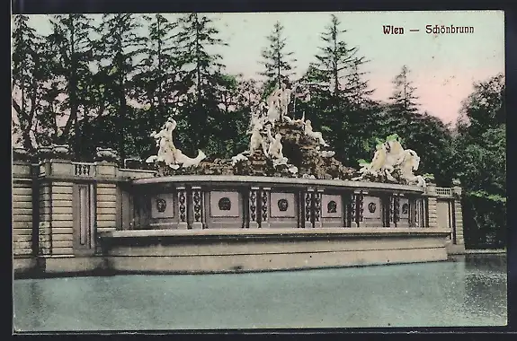 AK Wien, Schönbrunn, Blick auf den Neptunbrunnen