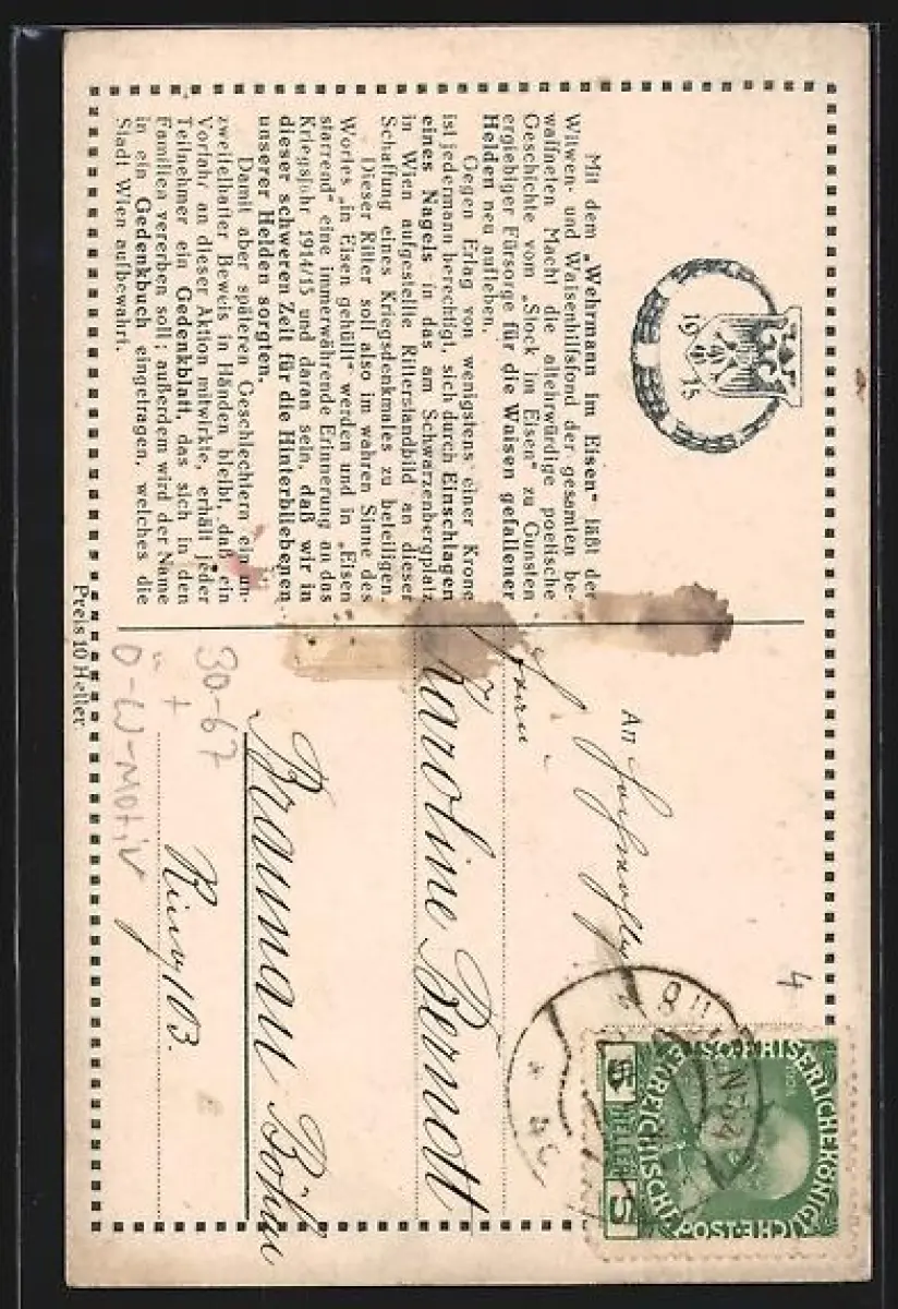 AK Wien, Schwarzenbergplatz, Nagelung, Wehrmann im Eisen, Ritter mit Schwert