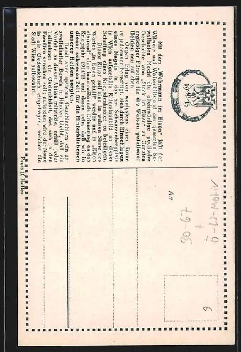 AK Wien, Schwarzenbergplatz, Nagelung des Wehrmanns im Eisen, Ritterrüstung mit Schwert