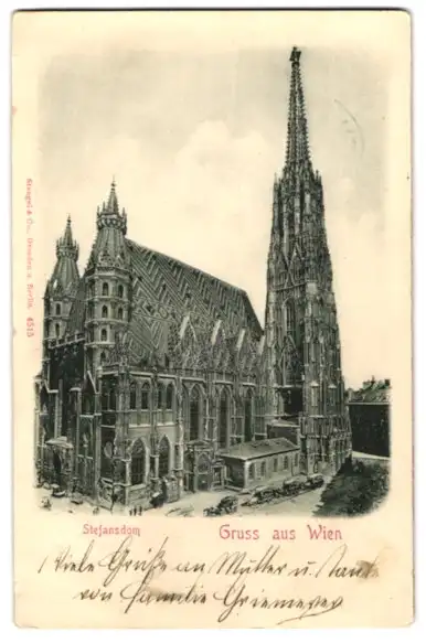 AK Wien, Stefansdom mit Kutschen