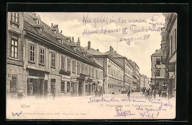 AK Wien, Ungargasse mit Train-Kaserne