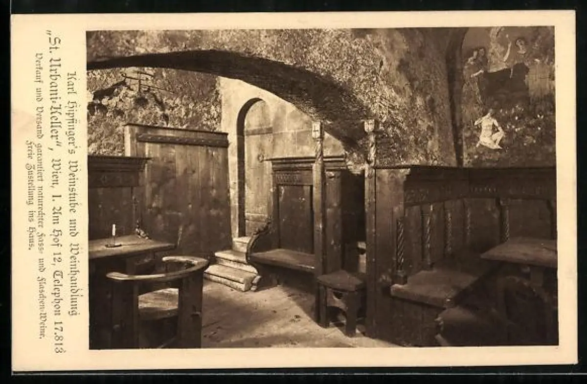 AK Wien, Weinstube und Weinhandlung St. Urbani-Keller, Am Hof 12, Innenansicht