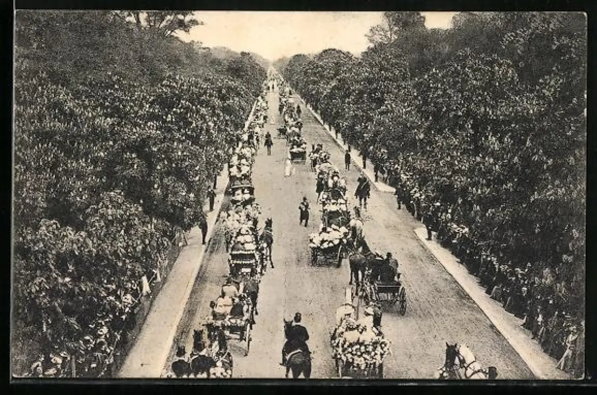 AK Wien, Wiener Prater, Hauptallee mit Pferdewägen