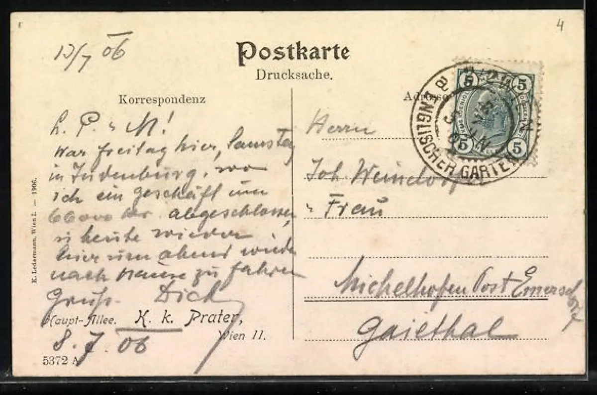 alte Ansichtskarte, gelaufen 1906, guter Zustand