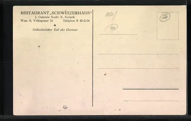 AK Wien, Wiener Prater, Volksprater, Restaurant Schweizerhaus J. Gabriels Nachf. N. Kolarik, volkstümlicher Garten