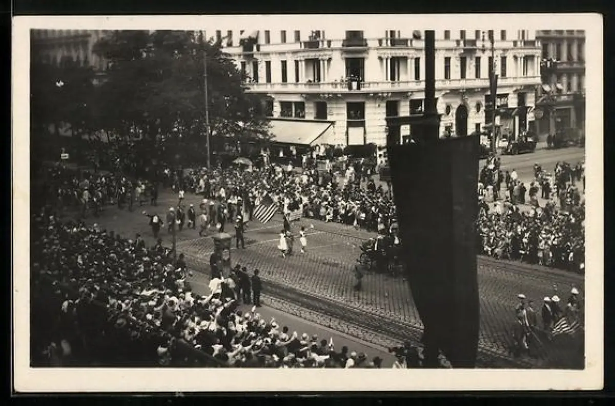 AK Wien, X. Dt. Bundes-Sängerfest, US-Amerikaner im Festzug