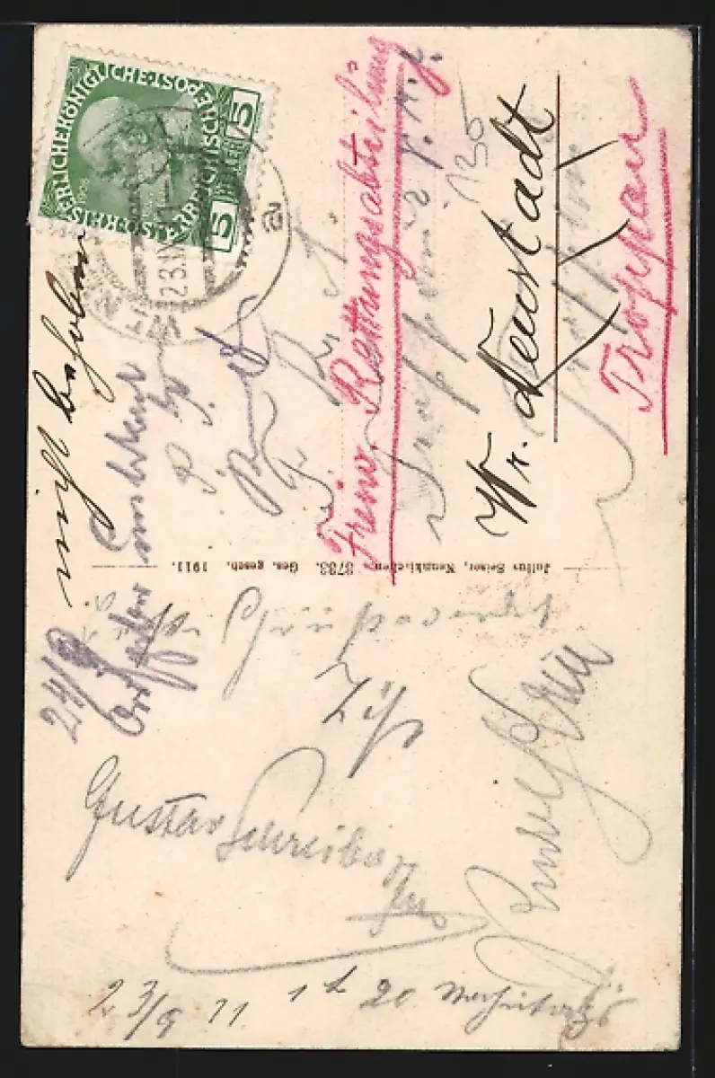 alte Ansichtskarte, gelaufen 1911, minimaler Einriss li. unten, guter Zustand