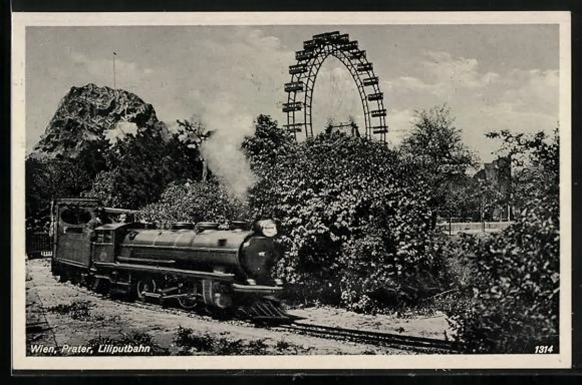 AK Wiener Prater, Liliputbahn und Riesenrad