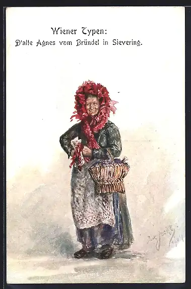 AK Wiener Typen, D'alte Agnes vom Bründel in Sievering