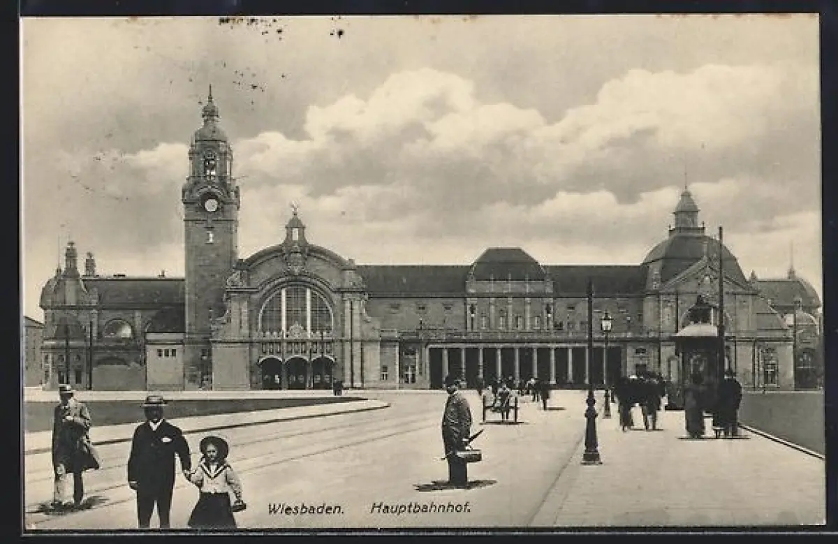 AK Wiesbaden, Blick auf den Hauptbahnhof