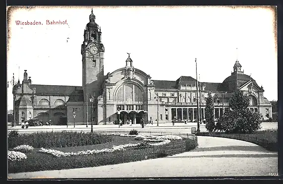 AK Wiesbaden, Blick zum Bahnhof