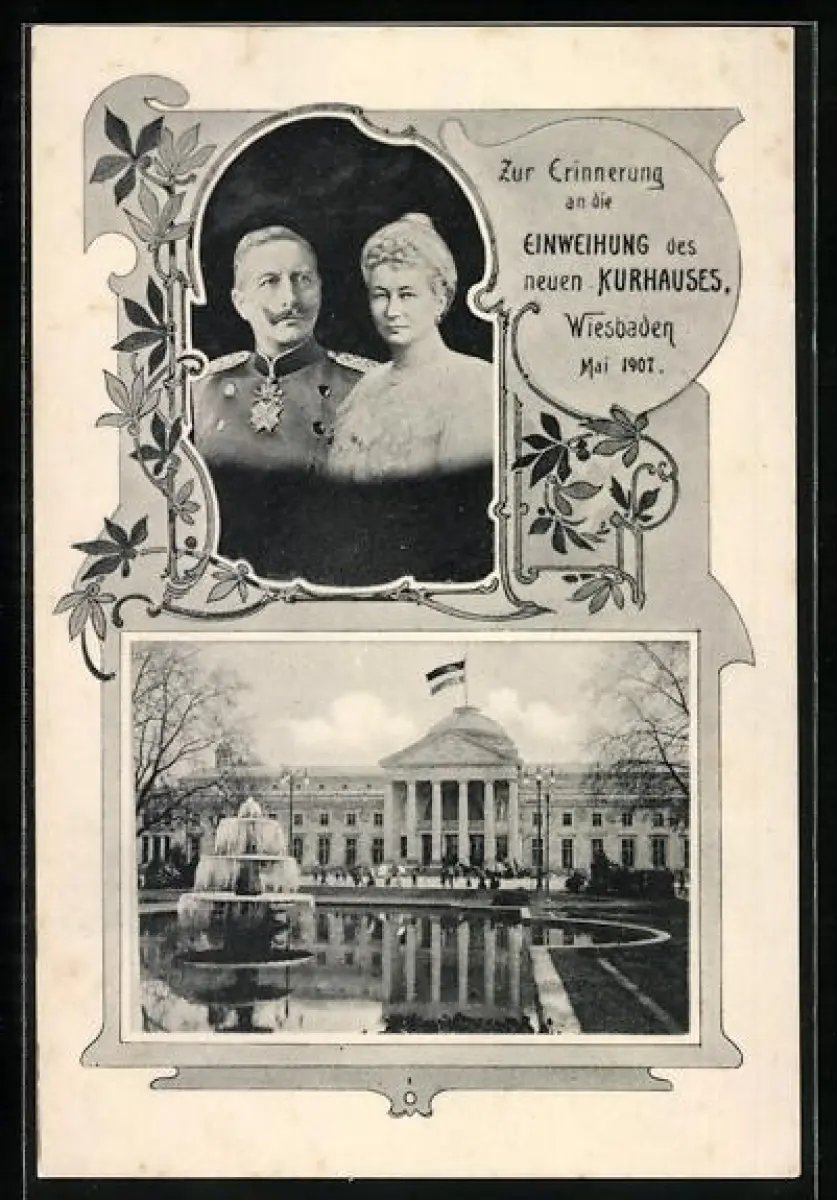 AK Wiesbaden, Einweihung des neuen Kurhauses 1907, Kaiser Wilhelm II. und die Kaiserin
